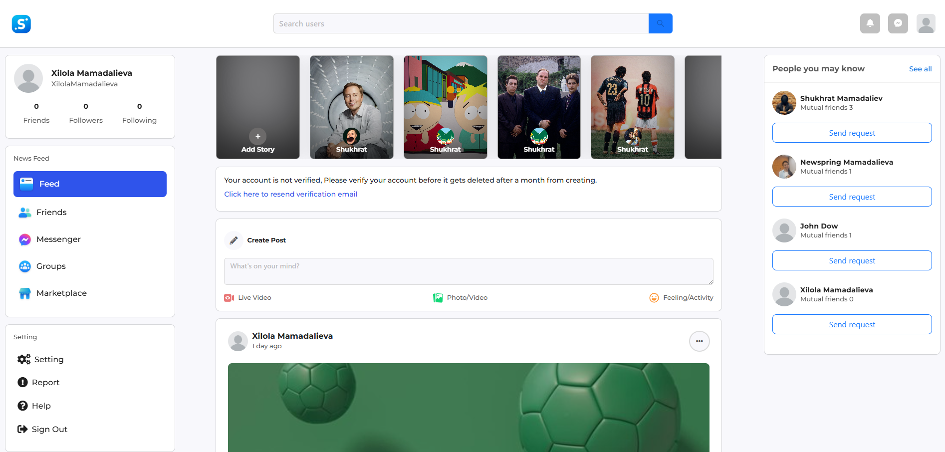 Suxbat is a social media web application inspired by Facebook, built with the goal of creating a simple, fast, and user-friendly platform where people can effortlessly connect. Users can share posts with images, follow others, and interact through likes and comments. Beyond basic social features, Suxbat includes real-time chat for private messaging, group creation for community discussions, and even a Marketplace section where users can post and browse items for sale or exchange.