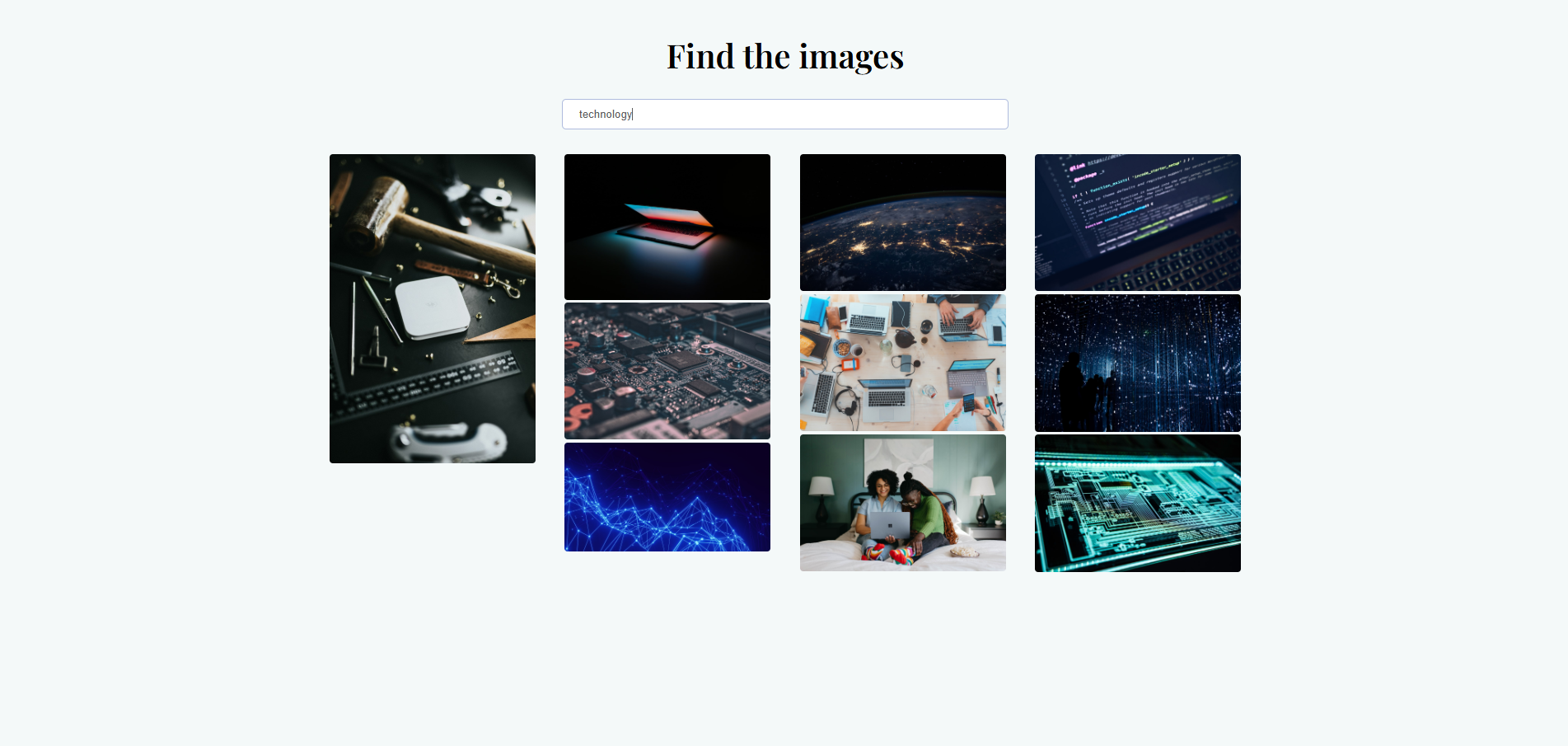 This project is a photo finder app built with the Unsplash API. Users can search for any keyword to instantly view high-quality images, load more results, and browse visually appealing photo grids. The goal was to practice working with external APIs, improve search functionality, and create a clean, responsive gallery interface using only front-end tools.